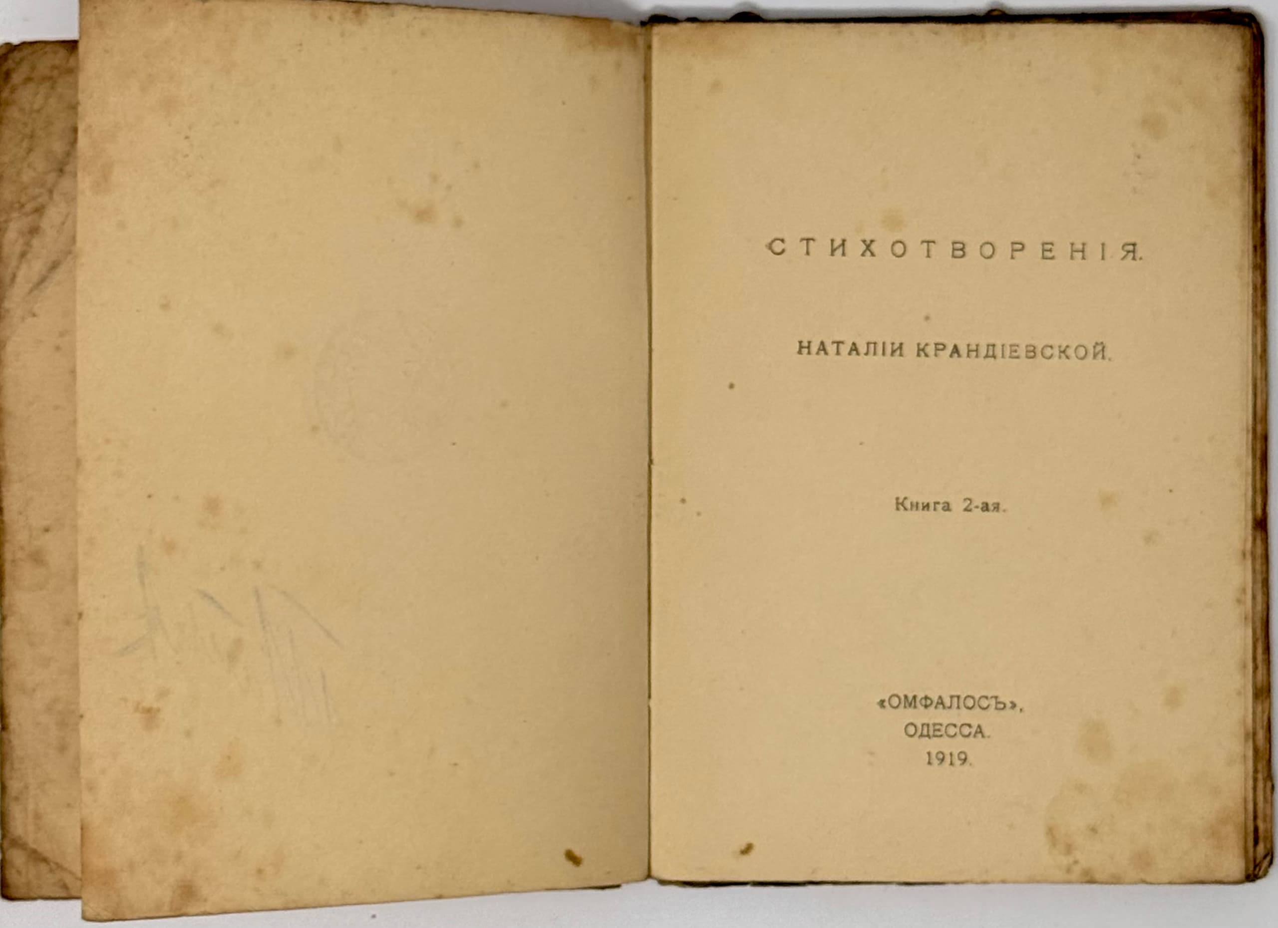 КРАНДИЕВСКАЯ Н.В. (1888-1963) Стихотворения: Книга 2-ая. Одесса: Омфалос, 1919.