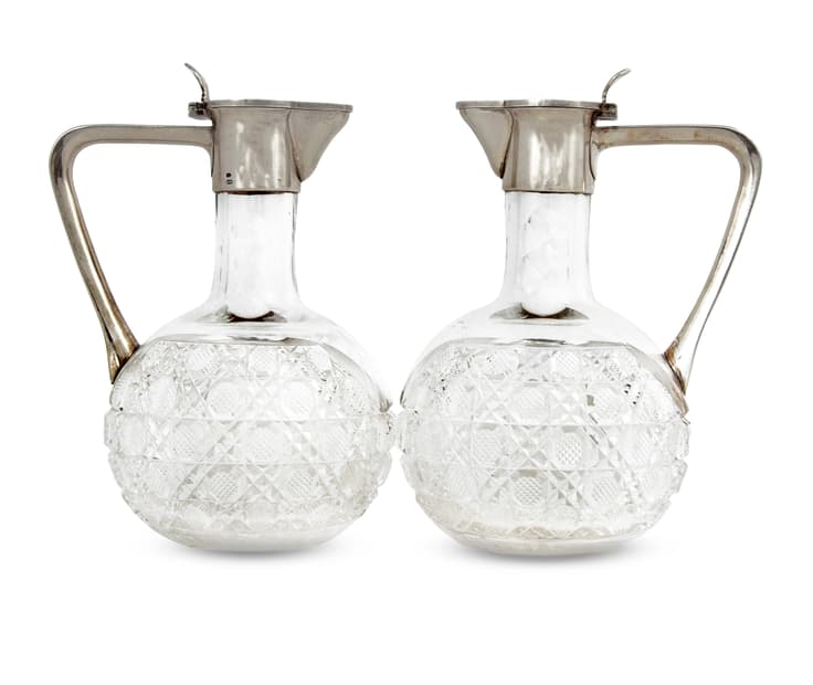 PAIR OF RUSSIAN SILVER-GILT MOUNTED CUT-CRYSTAL DECANTERS Konstantin Linke likely for the House Bolin, Supplier to the Court of His Imperial Majesty, St Petersburg, before 1897
