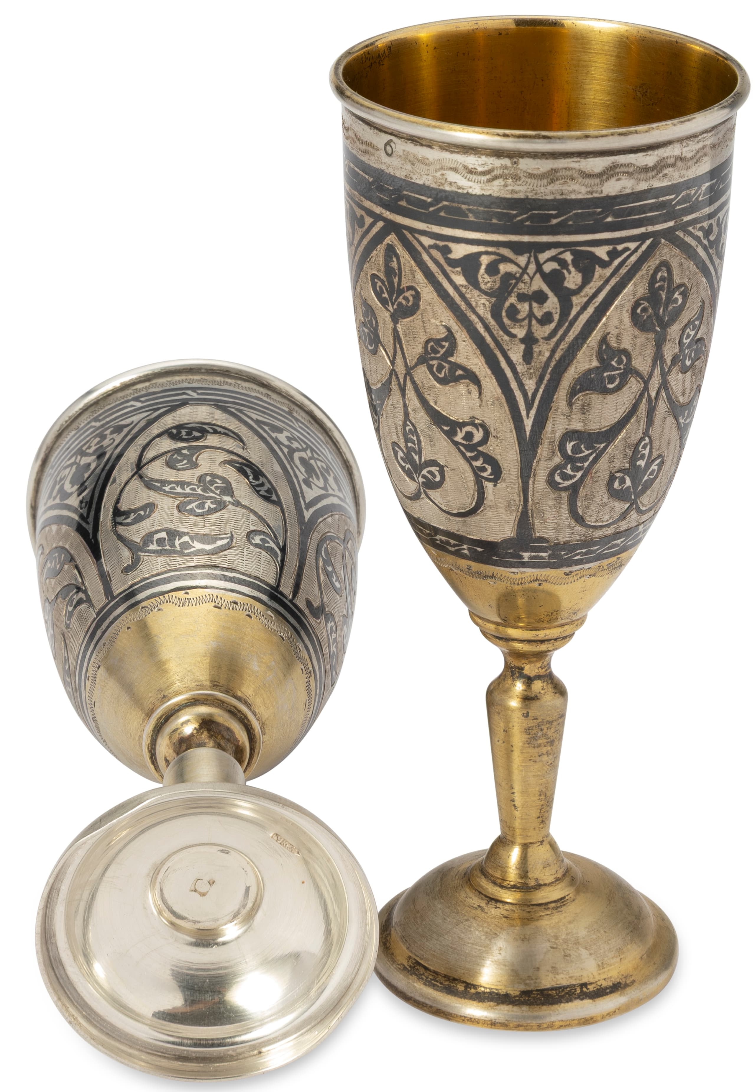 PAIR OF SOVIET PARCEL-GILT SILVER AND NIELLO FLUTES