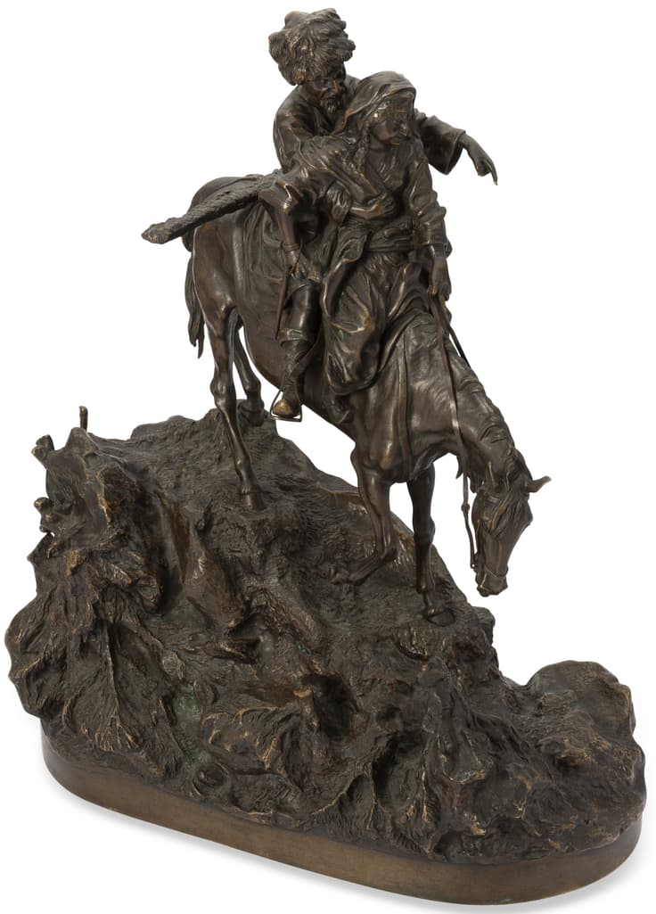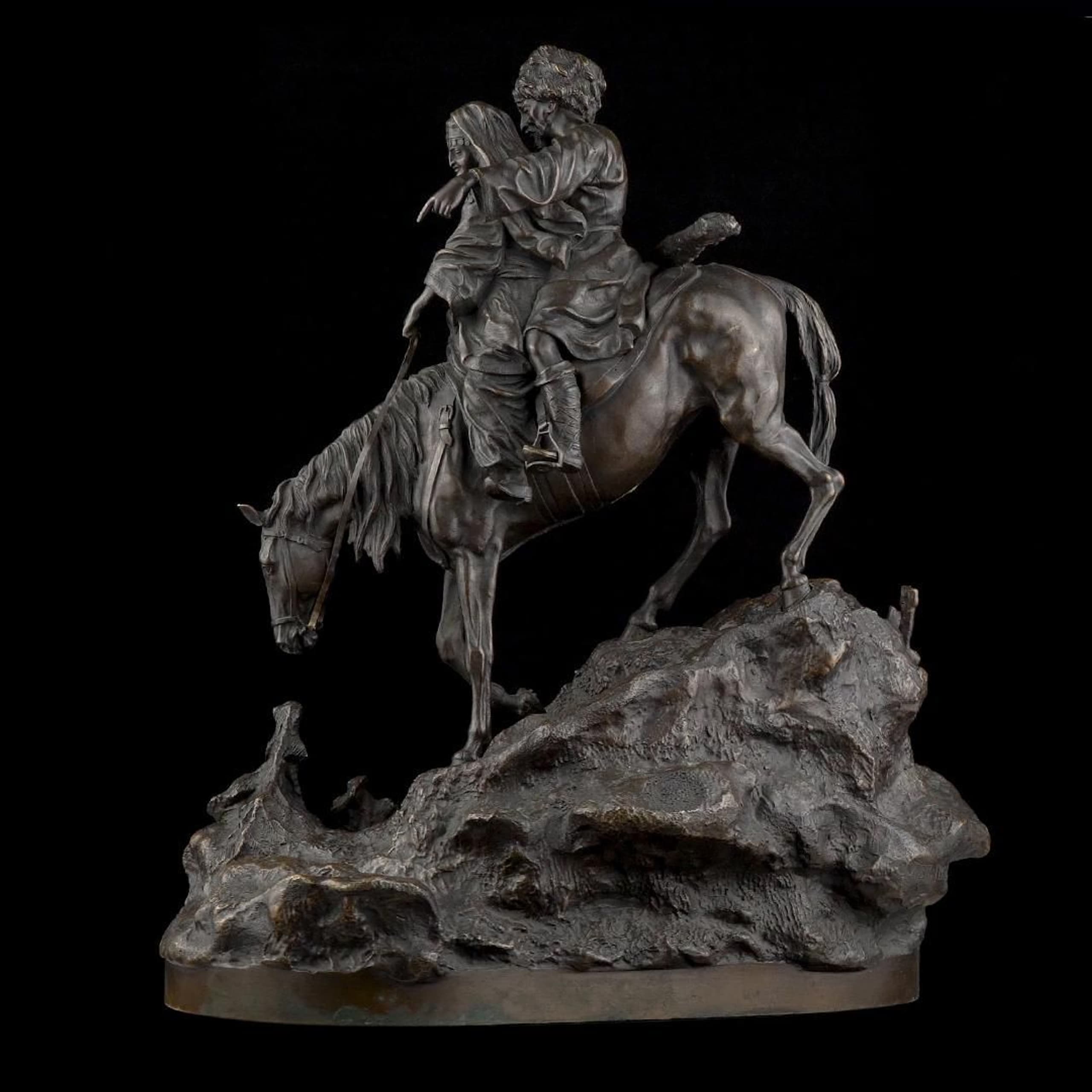 Vasily Yakovlevich Grachev was born into a family of peasants. As a boy, he was sent to study under the court engraver, Andreev, in Saint Petersburg for six years. Later in life, he worked alongside silversmiths, including I. S. Sazikov. Grachev was self-taught in sculpture. He created wax models for renowned manufacturers such as C. F. Woerffel, P. A. Ovchinnikov and I. P. Khlebnikov, and most of his works, which were cast in silver and bronze, are known under their brand names. In 1885, Vasily Grachev opened his own workshop and studio. He exhibited at the 1885 Art and Industry Exhibition in Saint Petersburg, receiving a silver medal for his composition ‘At the Watering Hole’. Grachev is widely regarded as one of the finest small-scale sculptors of the 19th century. The main themes of his work are genre scenes depicting people and horses, as well as historical and military scenes.