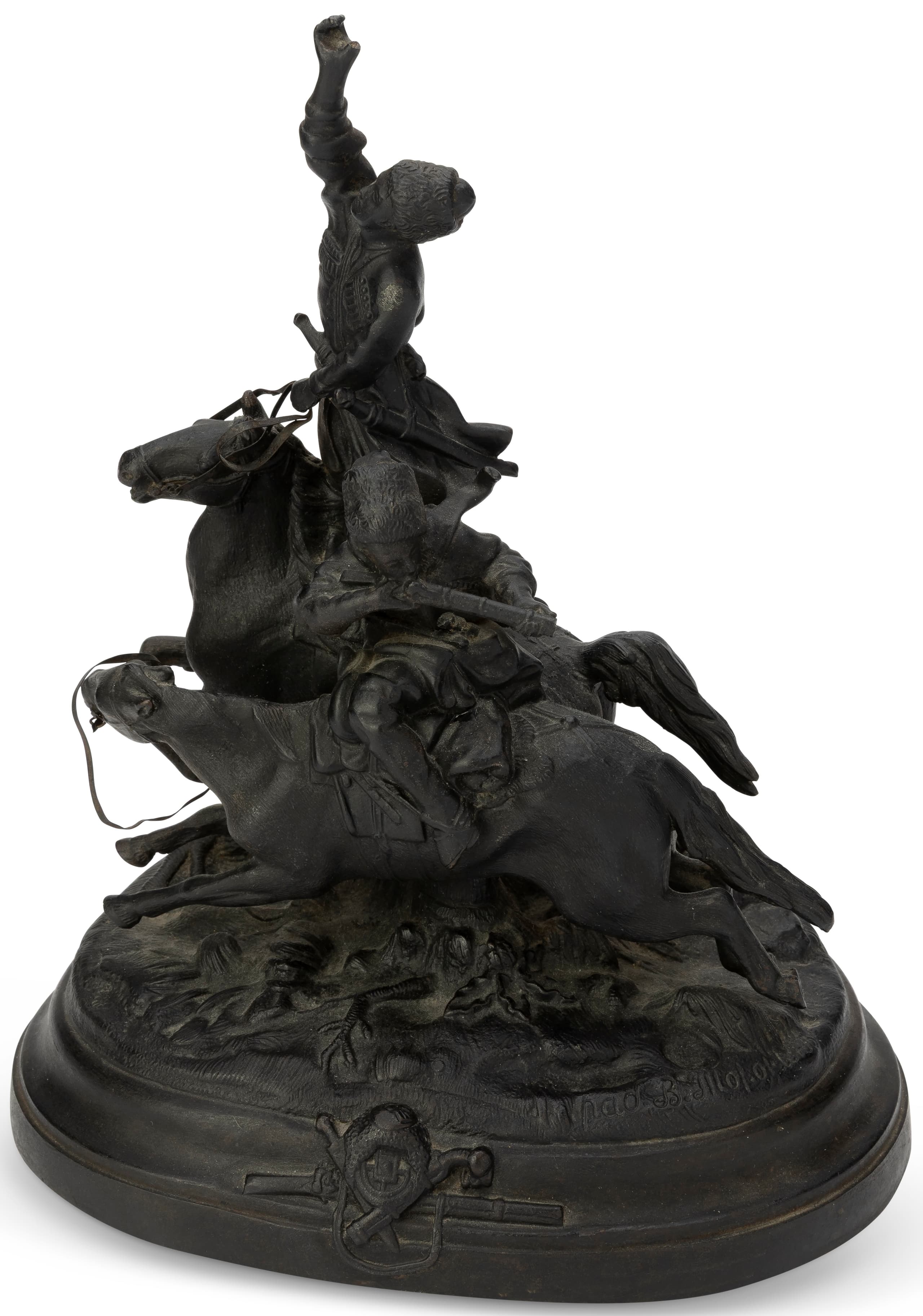 cast iron with black patina, on an oval base