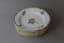 A set of six Meissen dinner plates, decorated with frits and flowers, featuring a gold border.