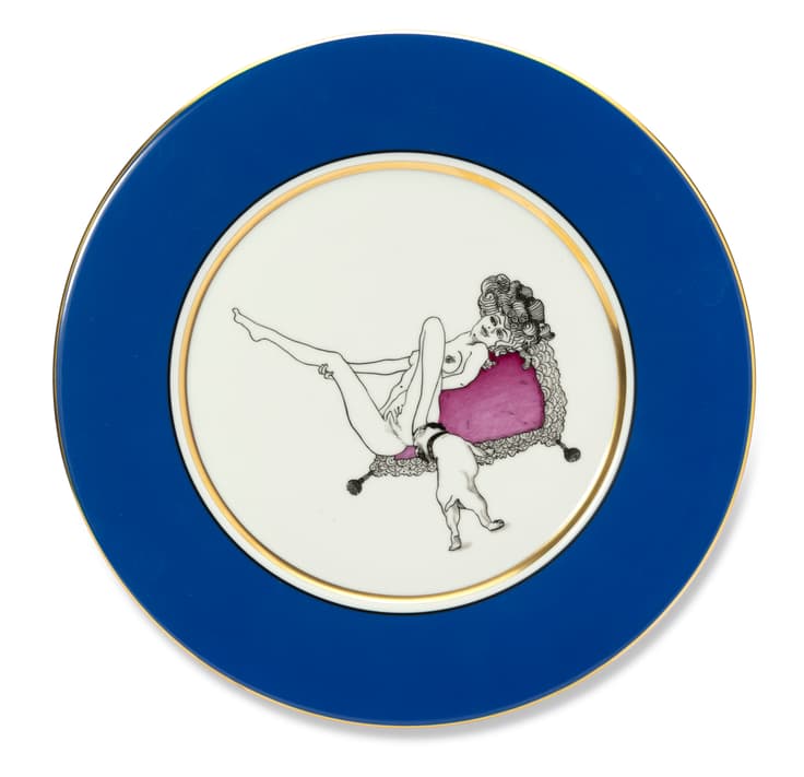 PETER NEBENGAUS (B. 1978) PORCELAIN PLATE WITH EROTIC PAINTING AFTER FRANZ VON BYROS