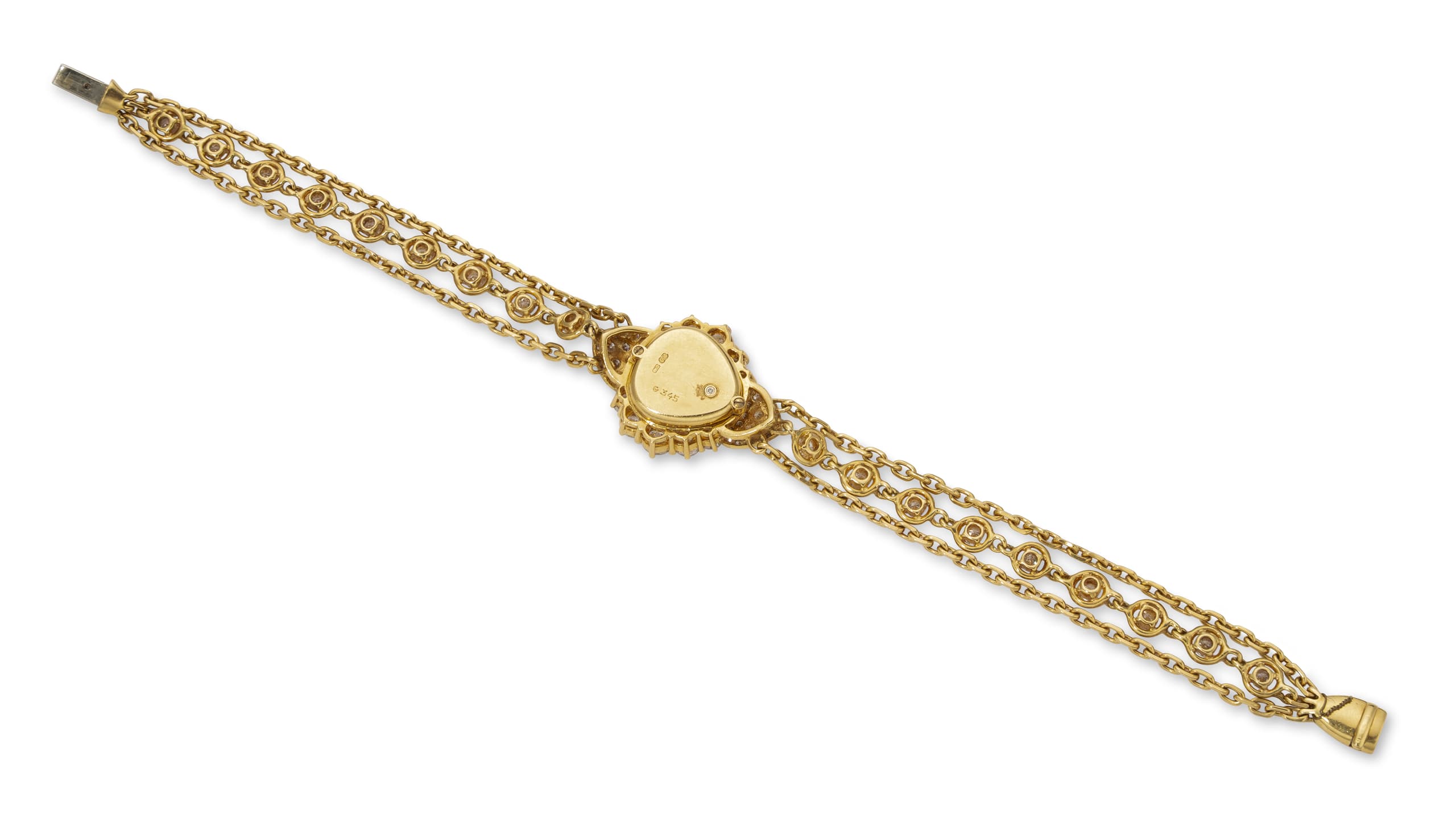 18k yellow gold Ladies bracelet watch set with diamonds weighing approximately 2.30 ct.