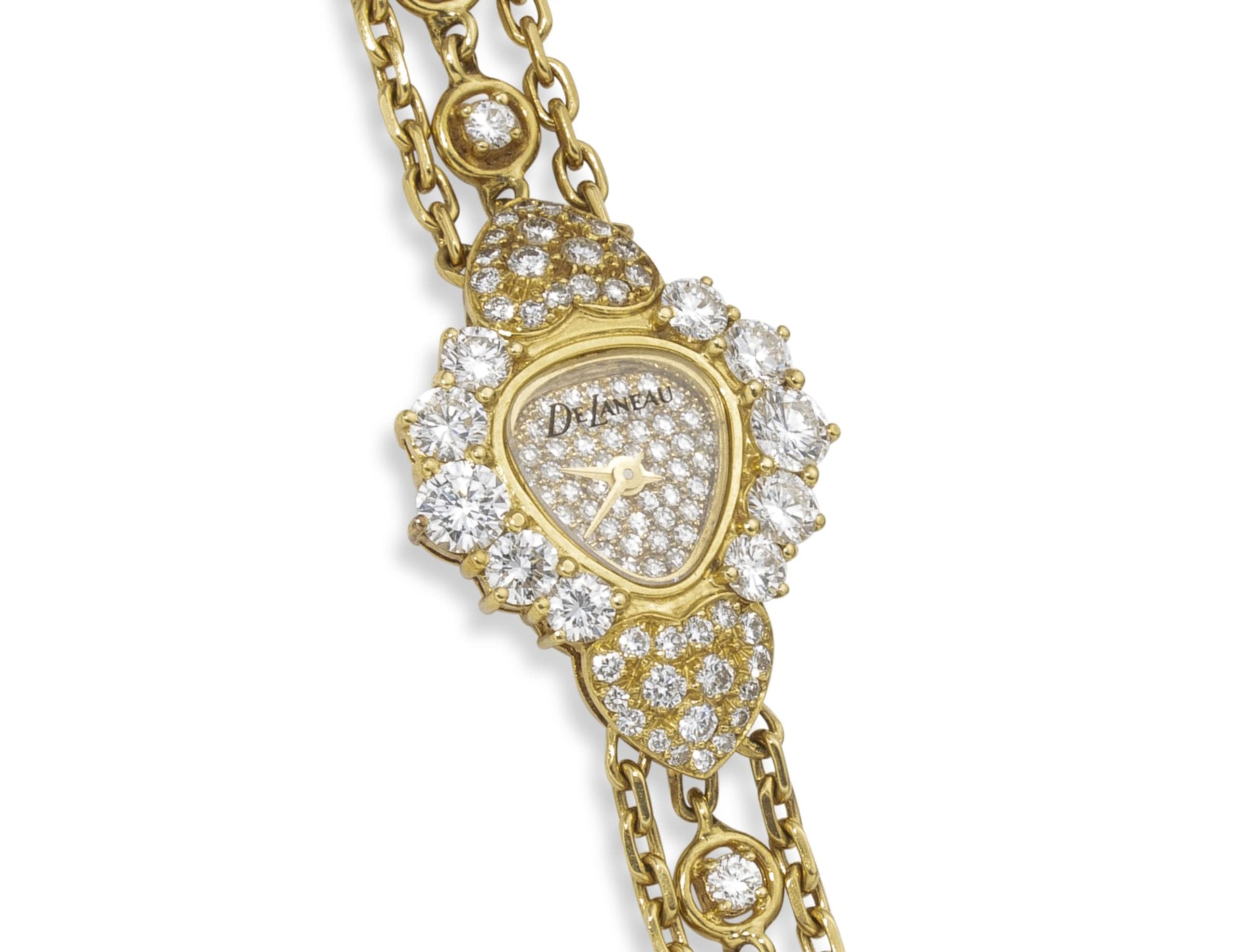 DELANEAU 18K YELLOW GOLD AND DIAMOND LADIES BRACELET WATCH