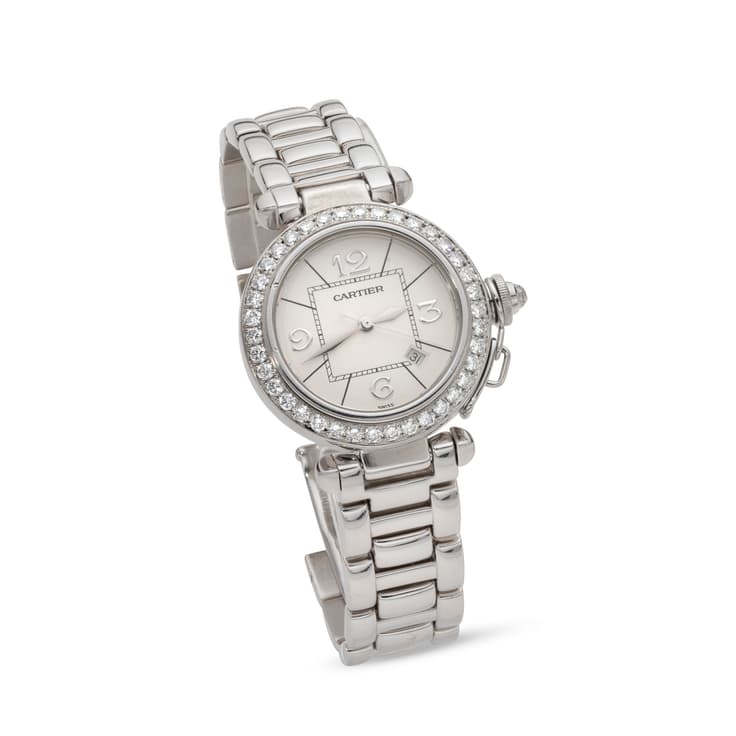 CARTIER ‘PASHA’18K WHITE GOLD AND DIAMONDS LADIES' WRISTWATCH