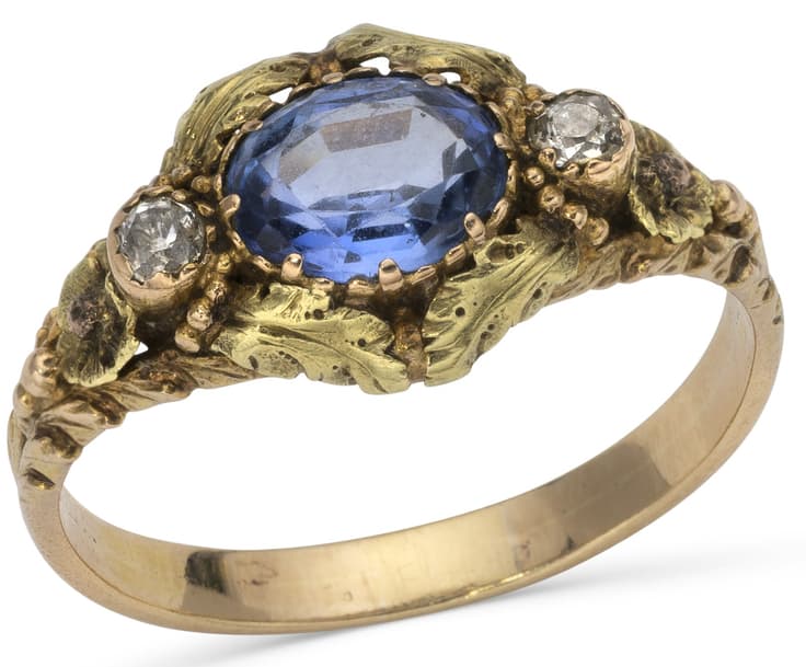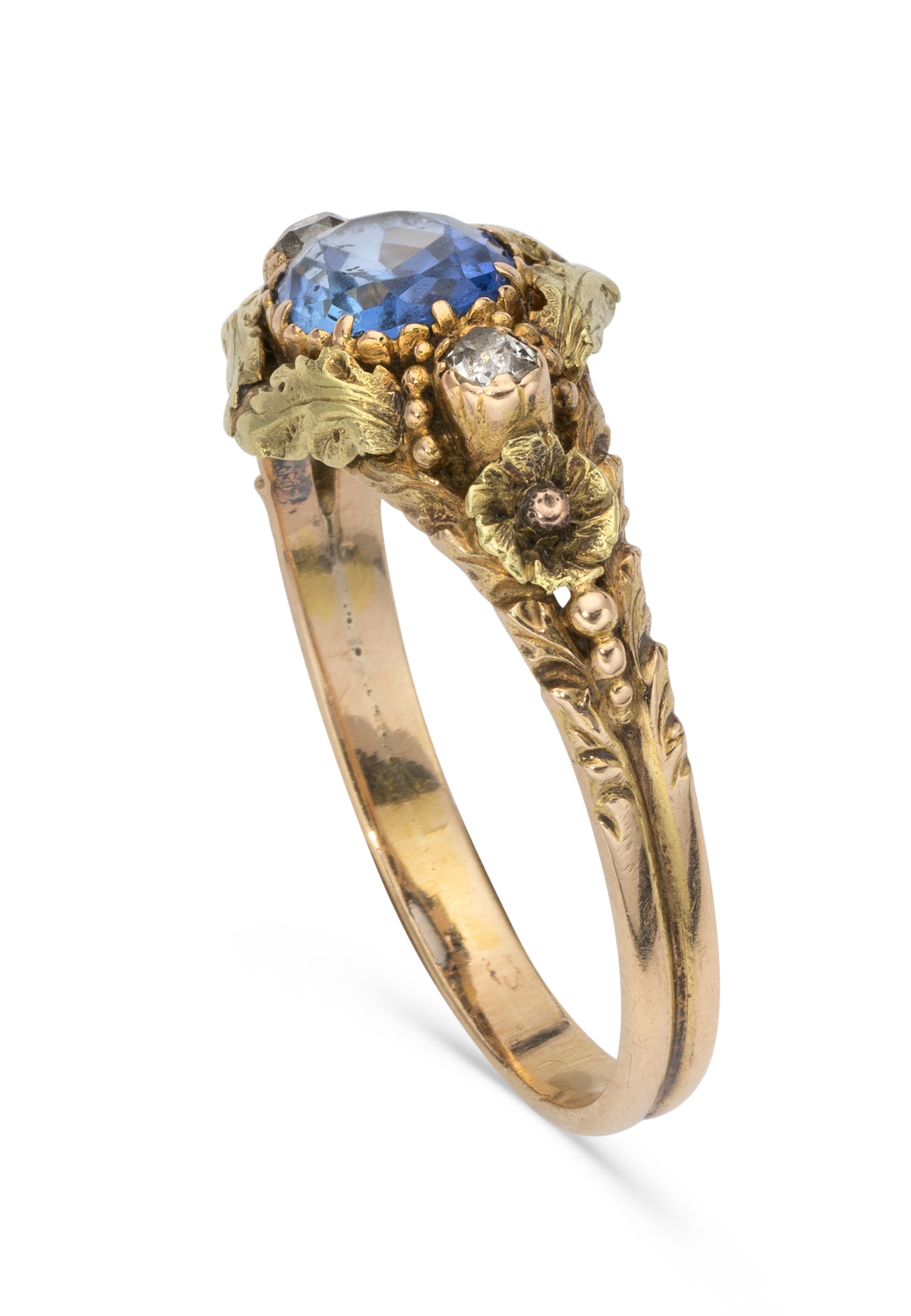 19TH CENTURY YELLOW GOLD DIAMOND AND SAPPHIRE CHARM RING