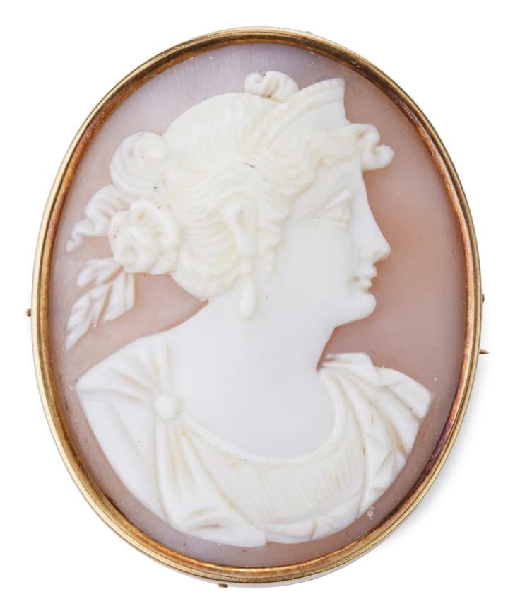 CAMEO AND GOLD BROOCH WITH FEMALE PROFILE