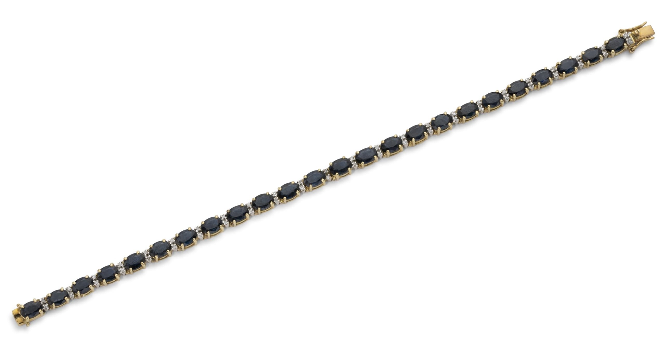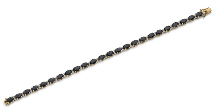 14k yellow gold bracelet set with diamonds weighing approximately 0.48 ct. and Australian sapphires weighing approximately 7.00 ct.