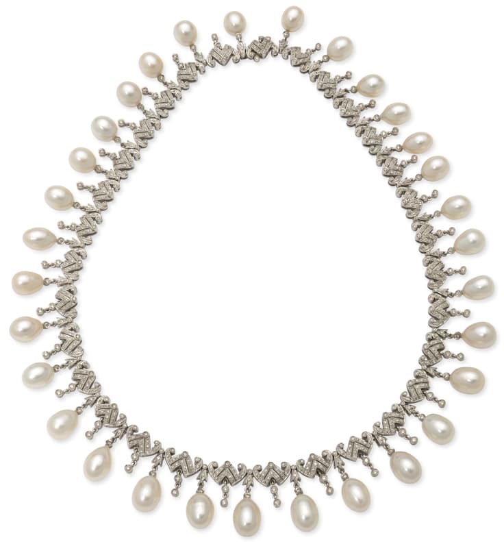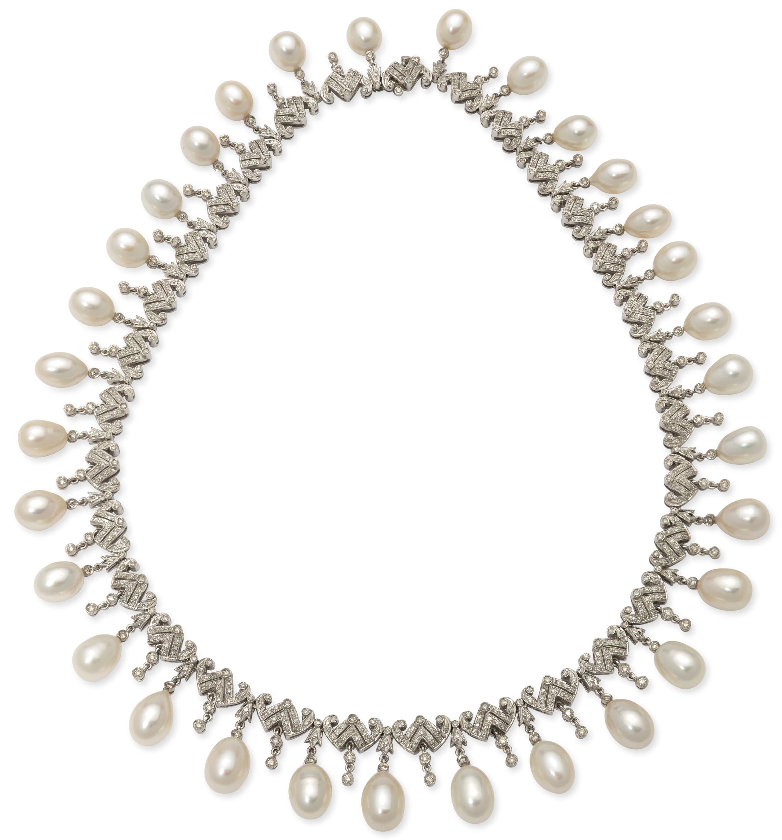 14k white gold necklace set with freshwater pearls and diamonds weighing approximately 3.50 ct