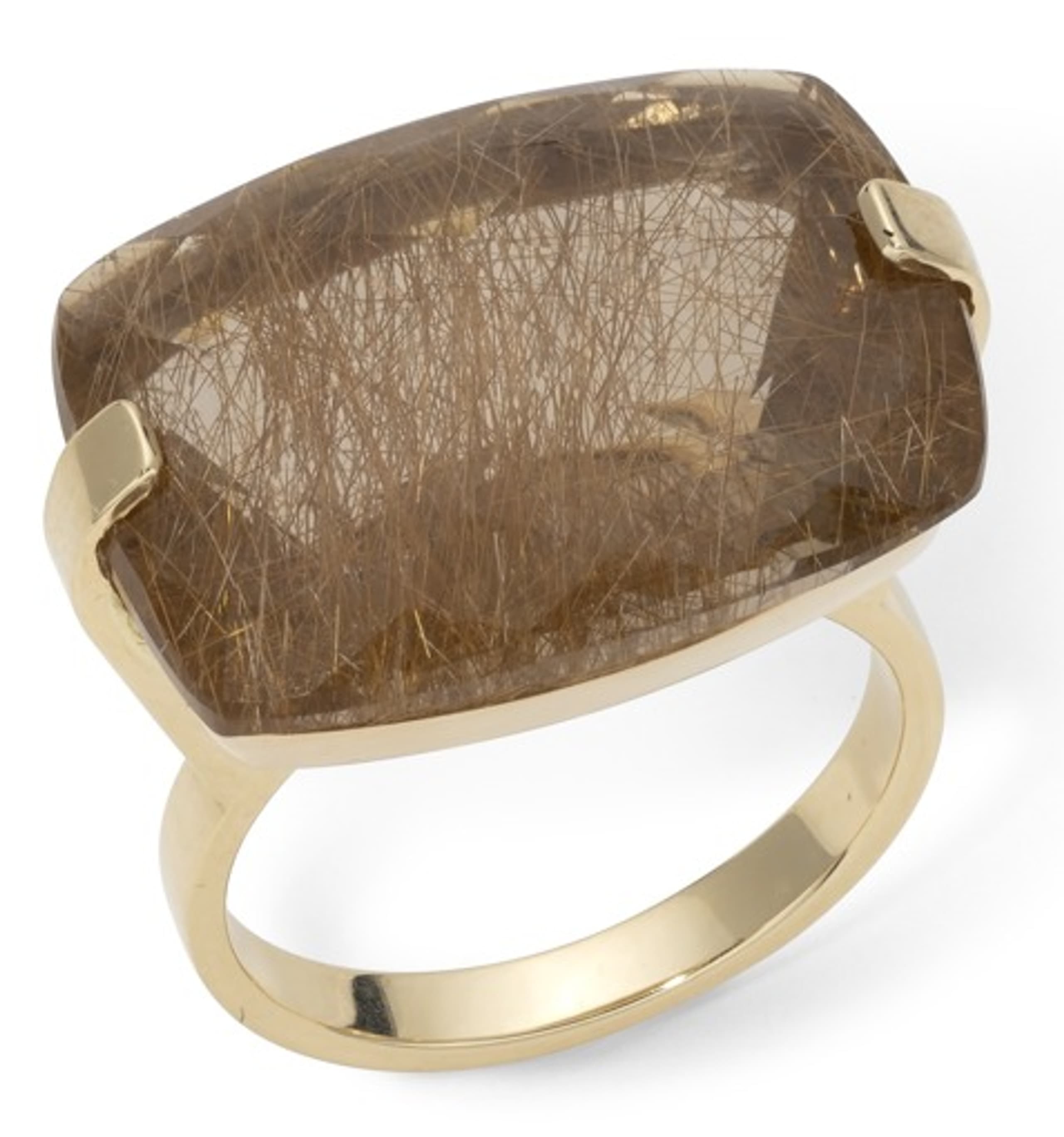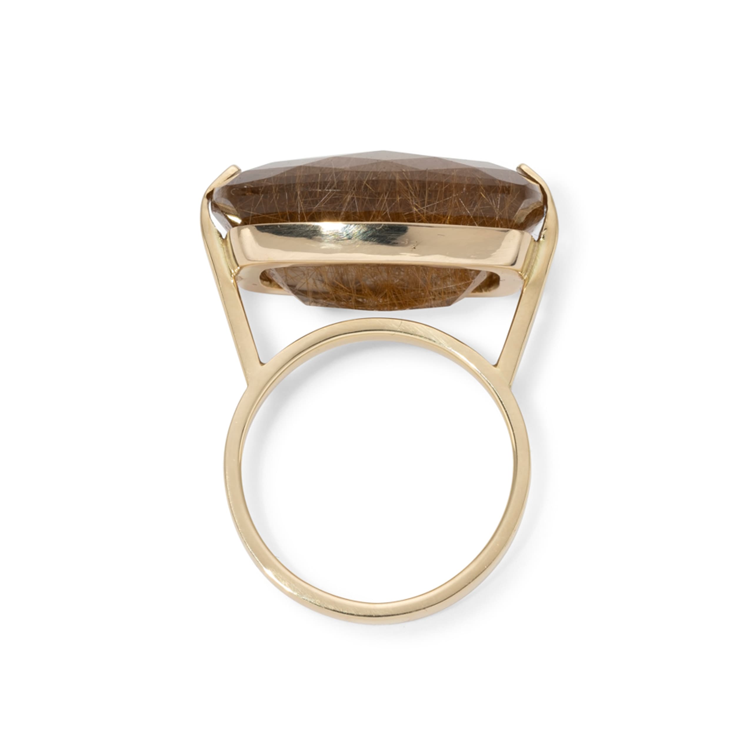 14k yellow gold ring set with yellow quartz rutile weighing approximately 4.14 ct. Hallmarks: ‘585’ size: 53 gross weight: approximately 10 gr.