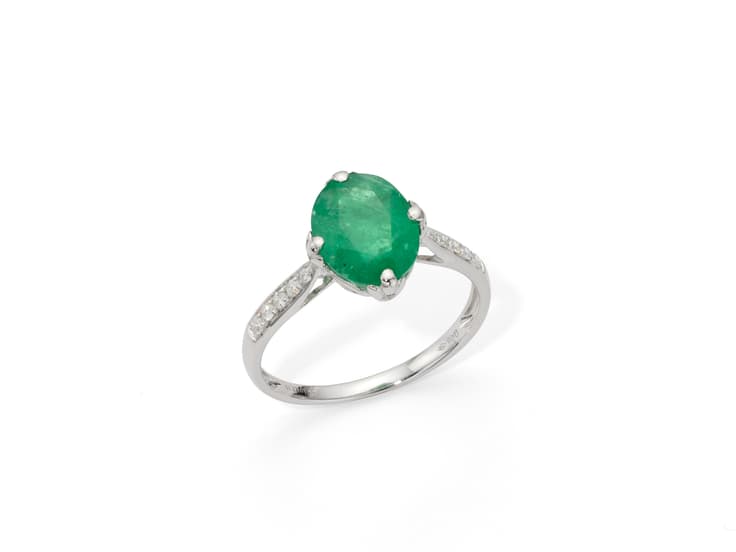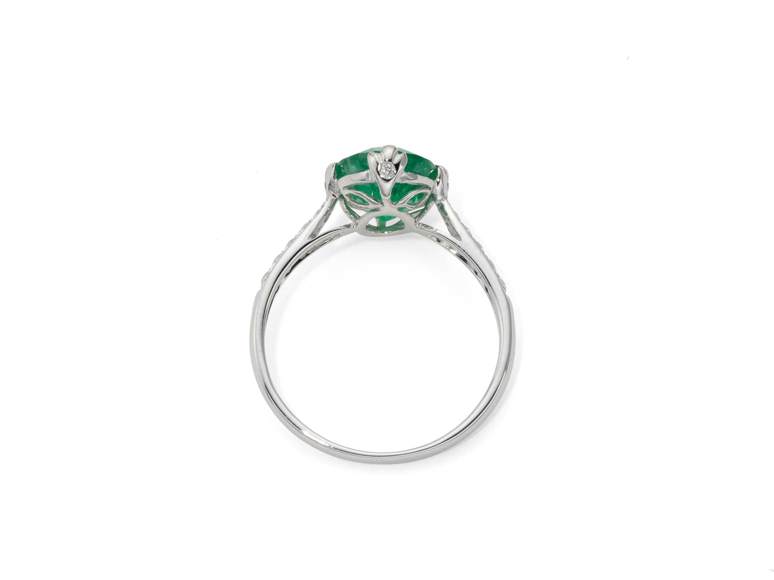18k white gold ring set with emerald weighing approximately 2.10 ct. and 14 diamonds weighing approximately 0.10 ct.