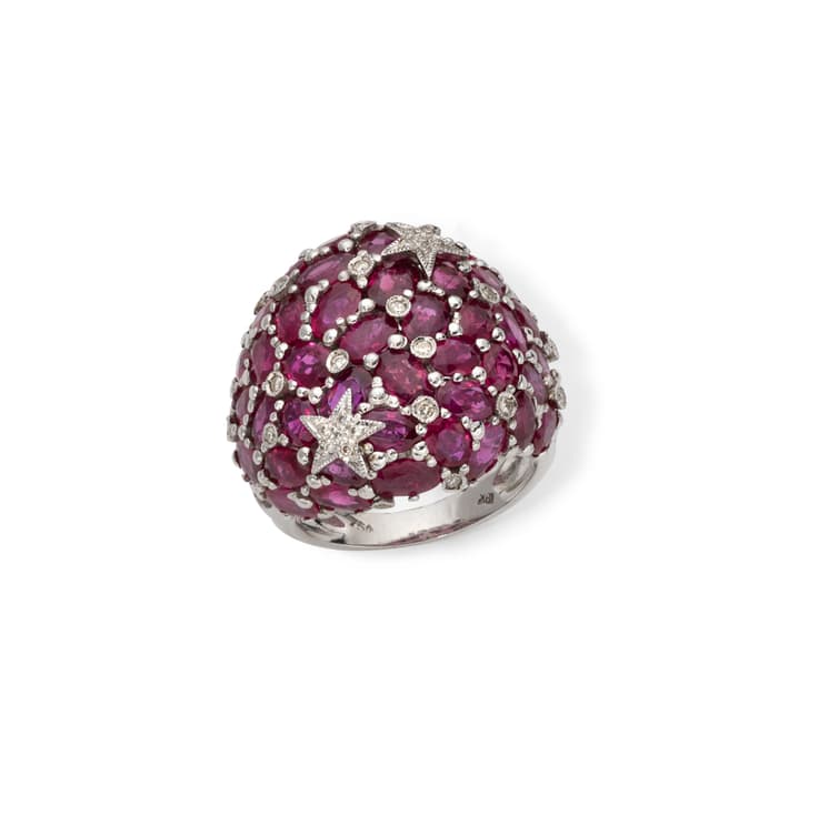18k white gold Dôme ring set with brilliant-cut diamonds weighing approximately 0.50 ct. and rubies weighing approximately 7.00 ct.