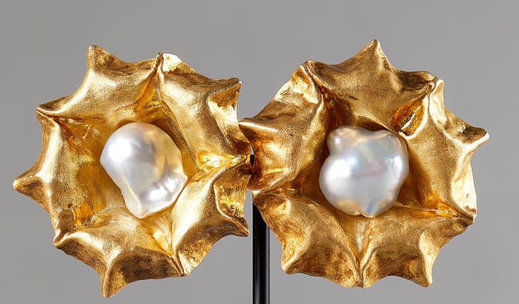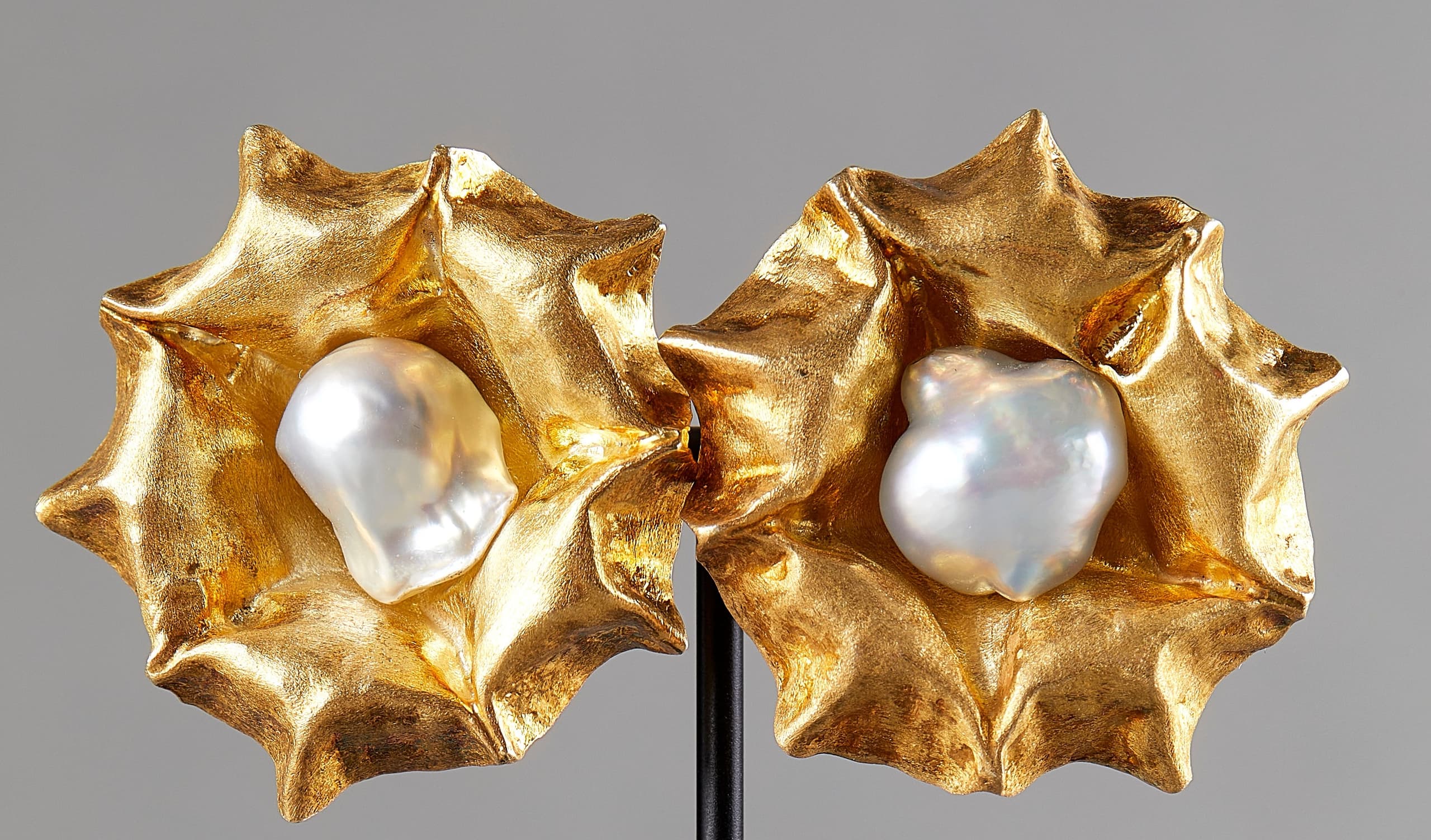 ‘FLOWER’ SILVER-GILT EARRINGS WITH CULTURED PEARLS
