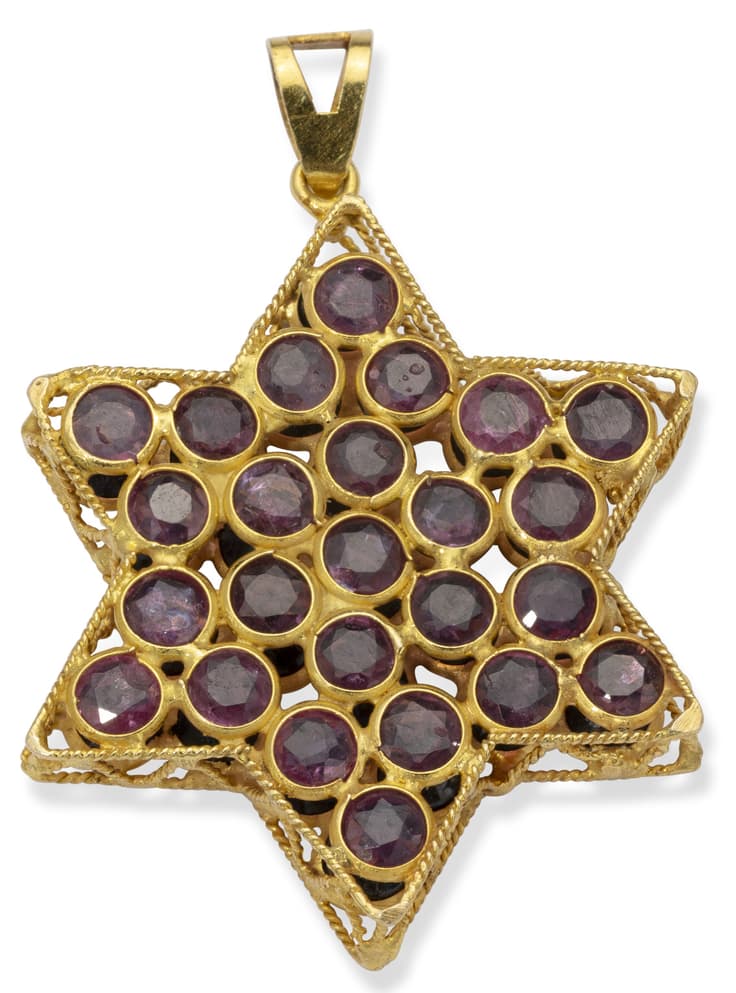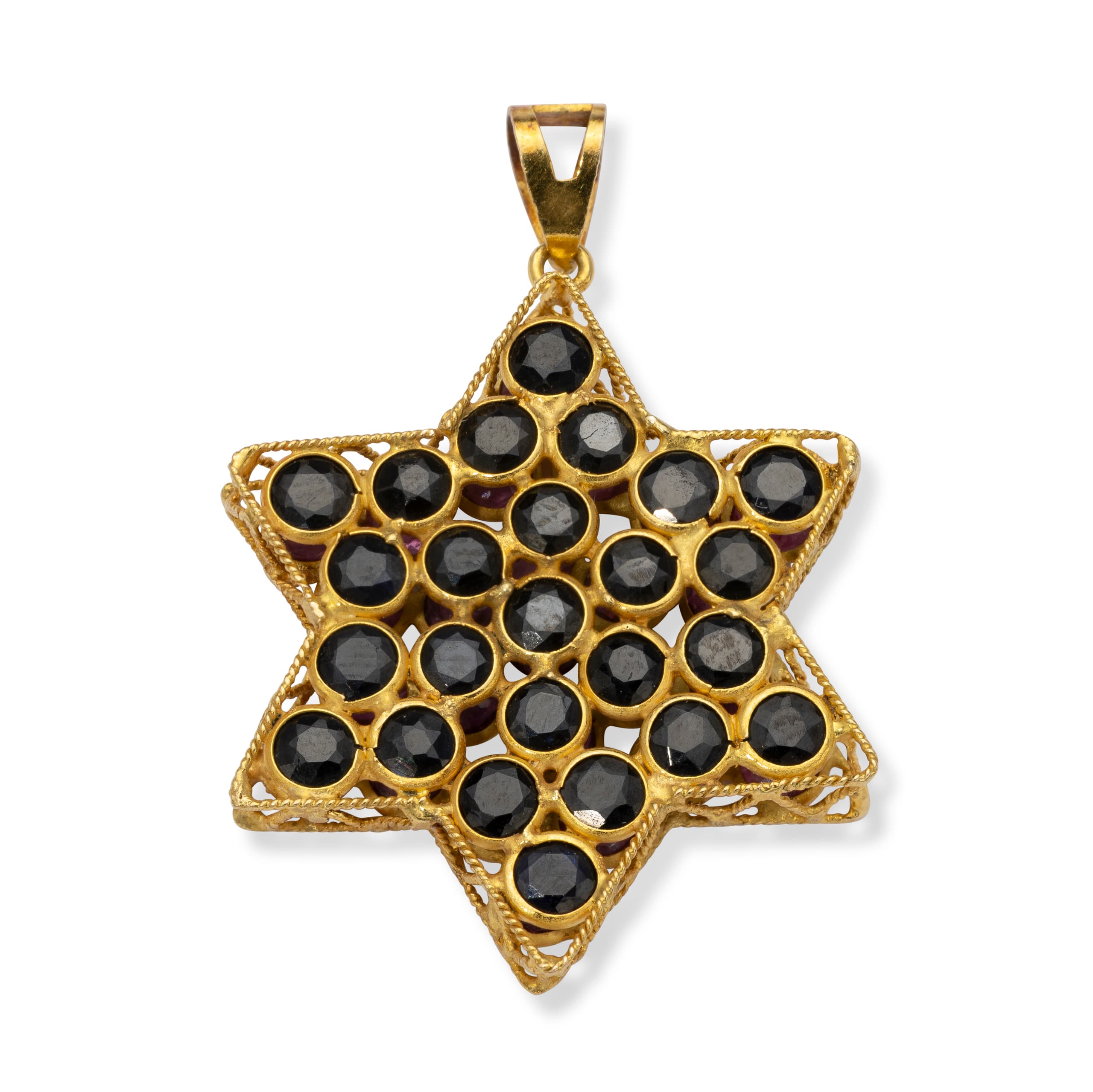 18k yellow gold reversible star-shaped pendant set with rubies weighing approximately 0.70 ct. and sapphires weighing approximately 0.70 ct.
