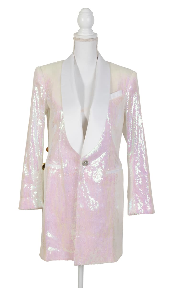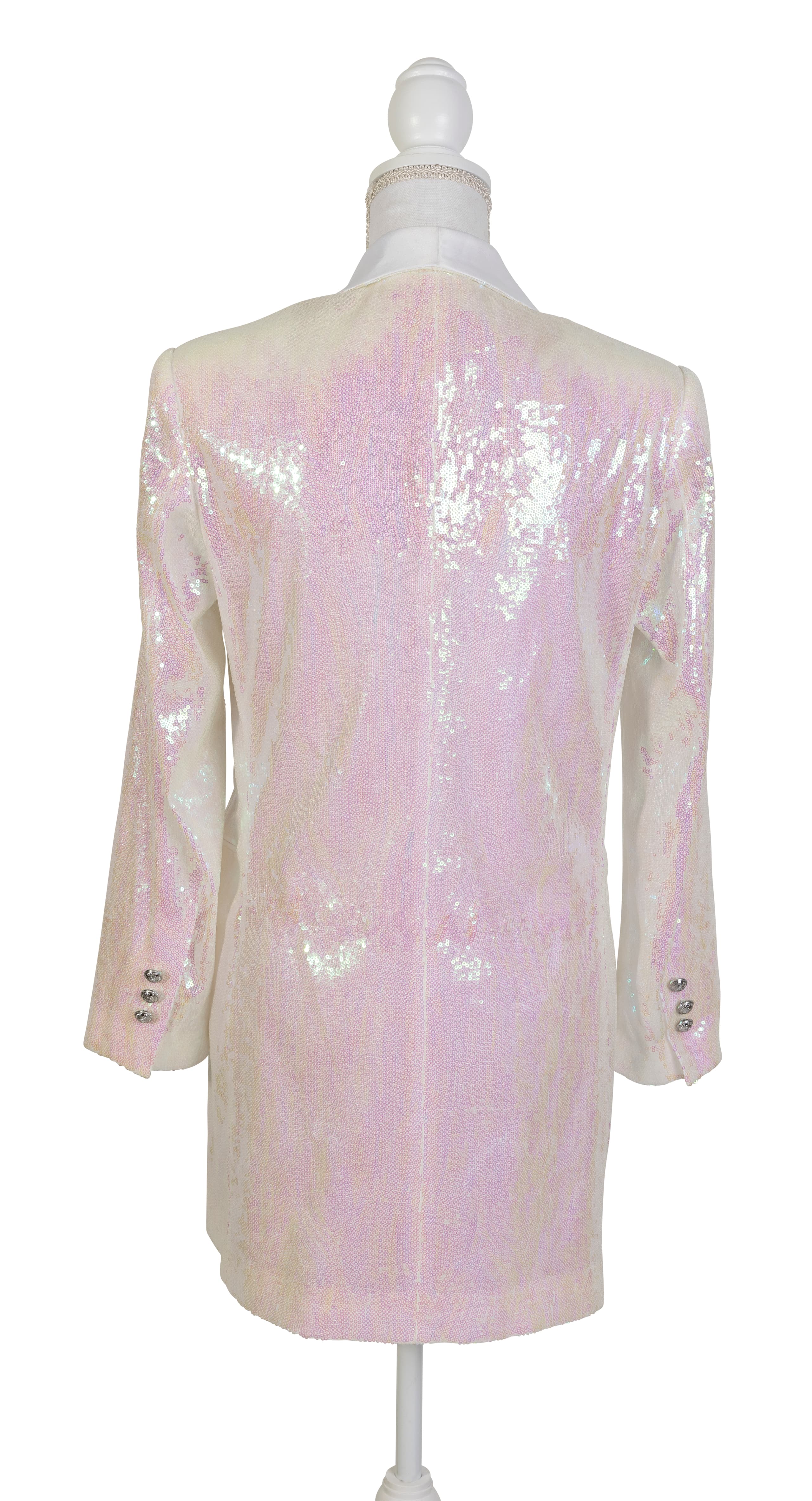 sequin jacket dress with side pockets and buttons with the Balmain’s logo.