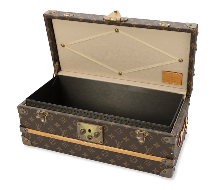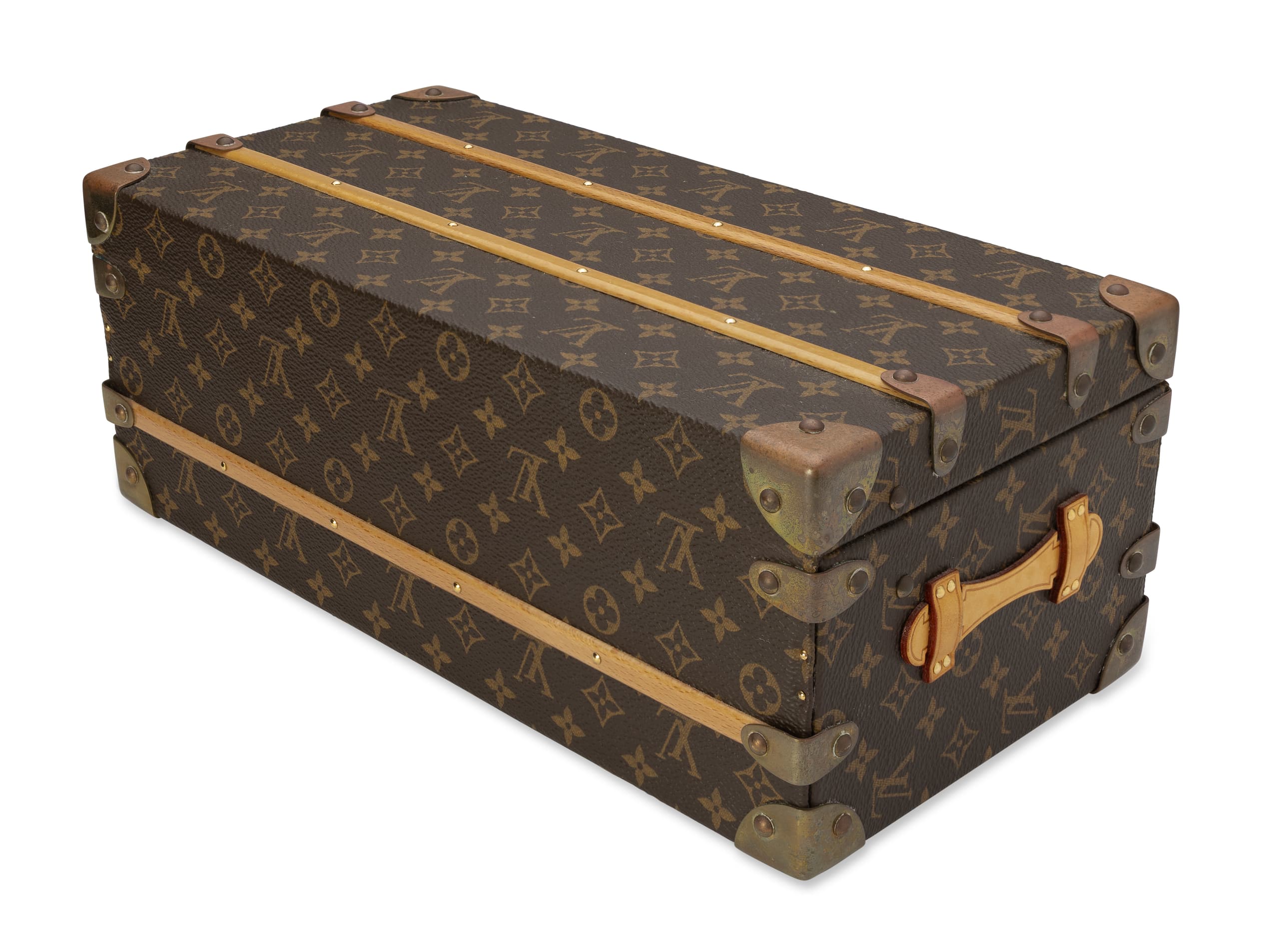 box: Monogram canvas exterior, Vuittonite lining, wooden slats, natural leather handles and gold-coloured metal fittings